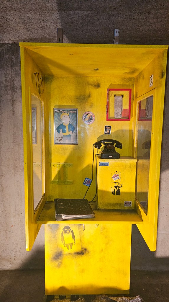 Eine Telefonzelle mit der interagierenden Personen mit fiktiven Charakteren “telefonieren” können die in einer Zukunft leben.